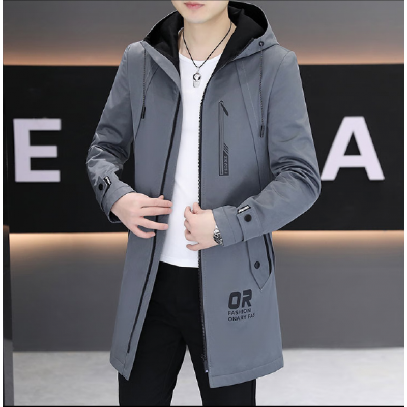 Men's windbreaker, mid-length, new style for autumn and winter, lined jacket, slim-fitting, stylish, casual windbreaker, cotton jacket